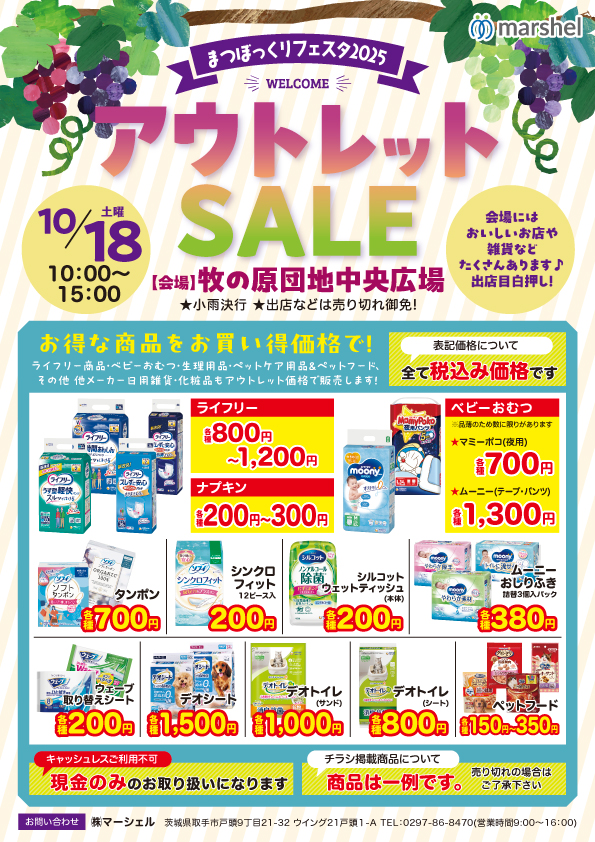 10/18(土)松戸市牧の原にてアウトレット販売を開催します!