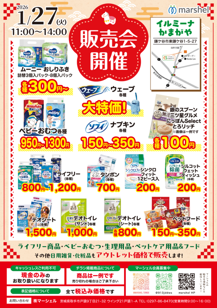 1/27(火)鎌ケ谷市東鎌ケ谷にてアウトレット販売を開催します!